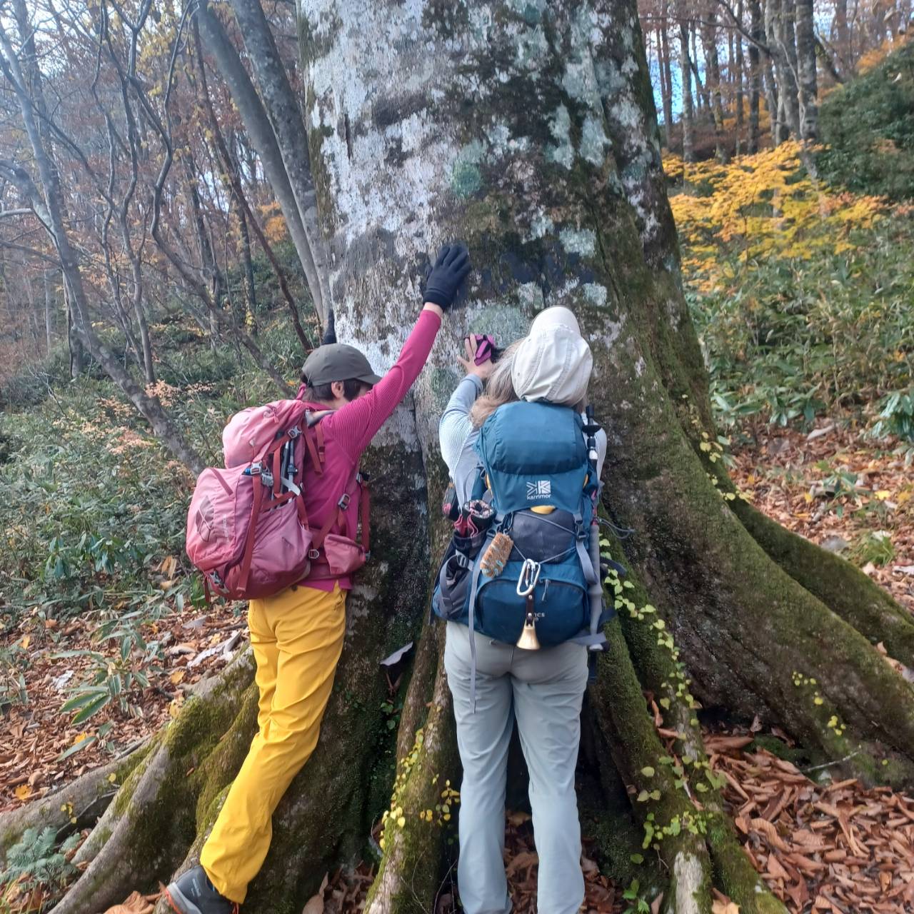 小沢を渡りブナ林、ここまで来ると半分くらい葉は落ちていた。後ひと月すればグレーの世界に入りそう。トラバースし柱状節理のある岩ゴロゴロゾーンは直登です。滑る苔あり注意必要、四輪駆動で。