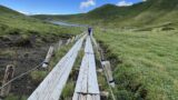 岩手労山の平井理事長さんと合流、ガイドをして頂いた。 昨日は秋田駒ケ岳に行ったが強風で途中引き返したという。10名のグループを率いてゆっくり先導して頂く。 5合目と8合目で短い休憩を取り山頂到着する。