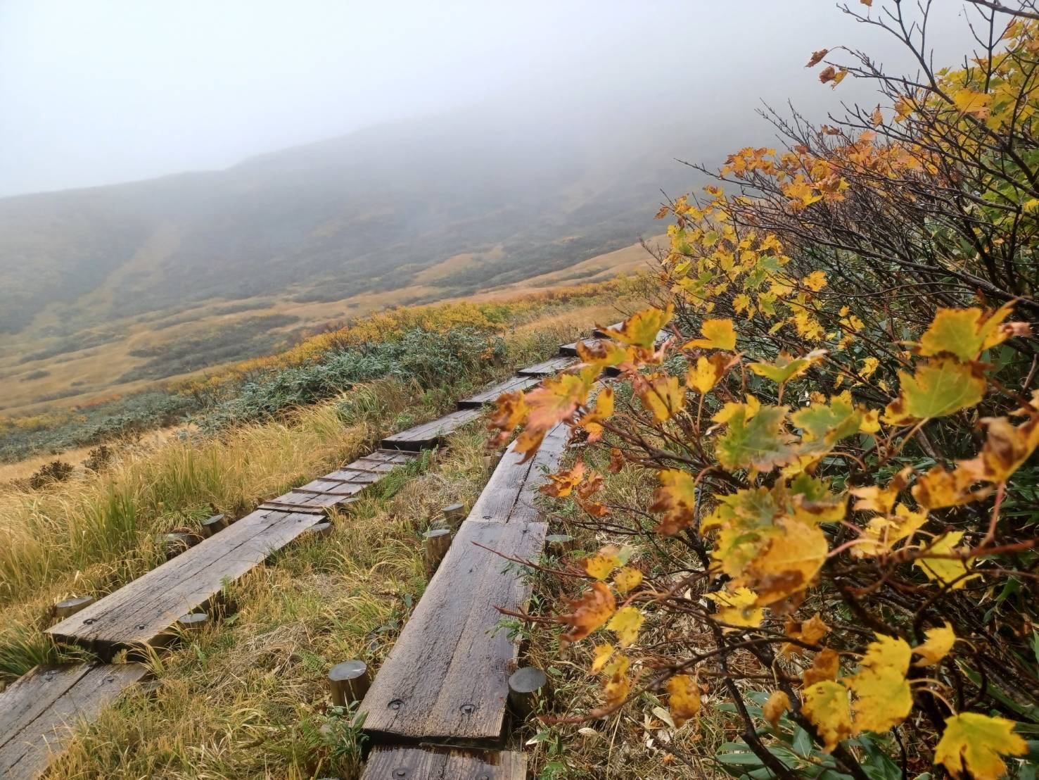 雨具を着用しても濡れて寒さを感じながら、11時過ぎに駐車場に戻ると、なんと太陽が顔を出しました。