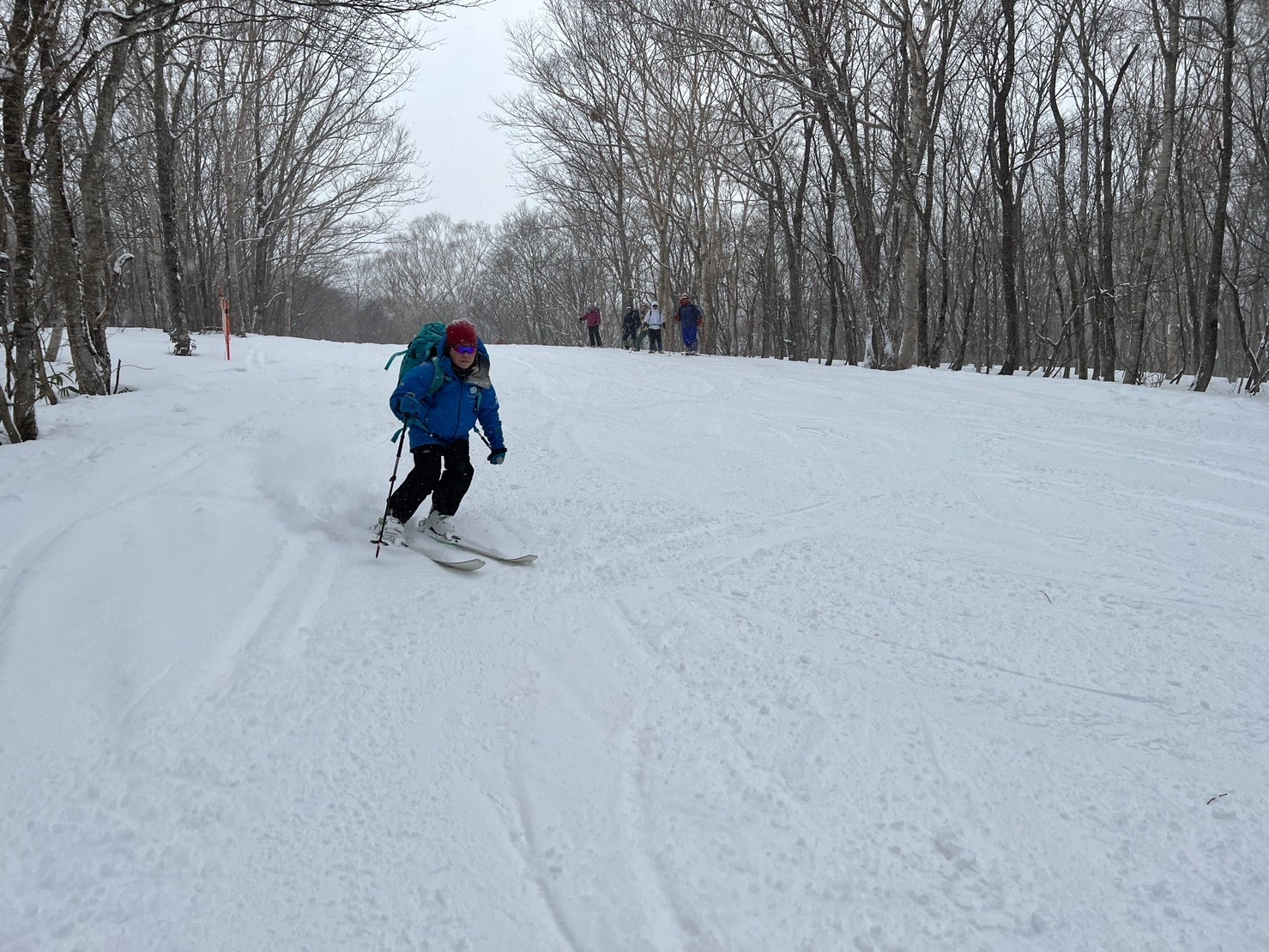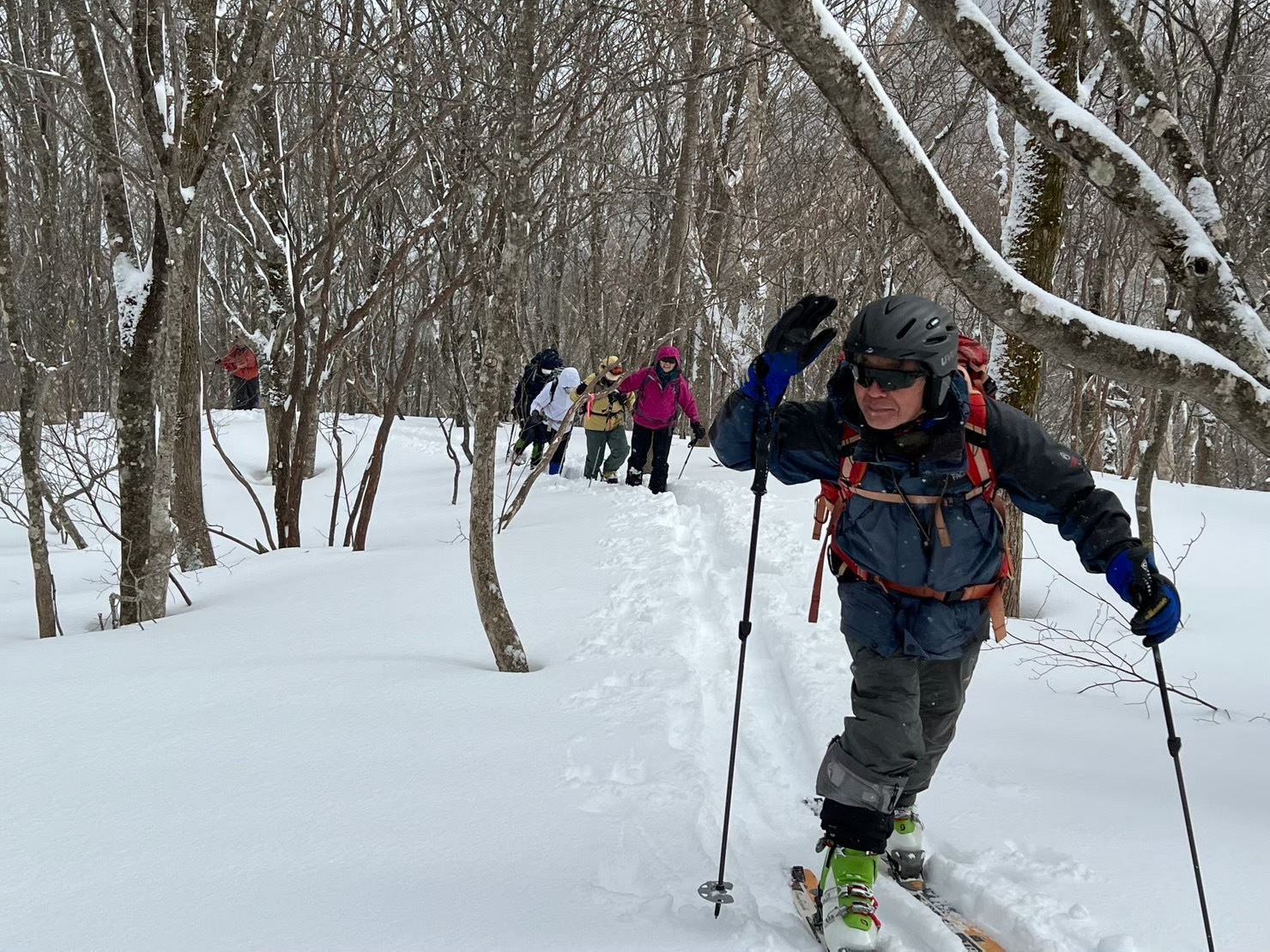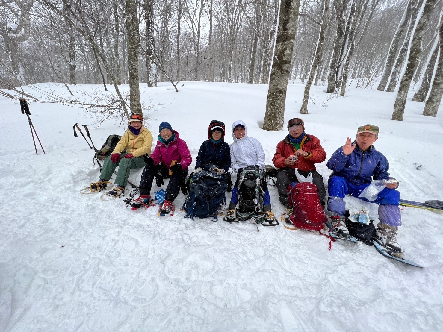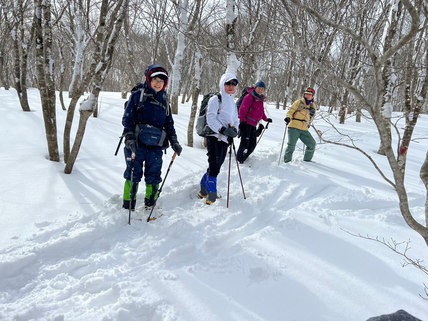 朝、レストハウス付近は悪天候で気持ちか沈んでましたがやっぱり楽しいスノートレッキングでした。皆さん急坂も頑張りました。お疲れ様でした。