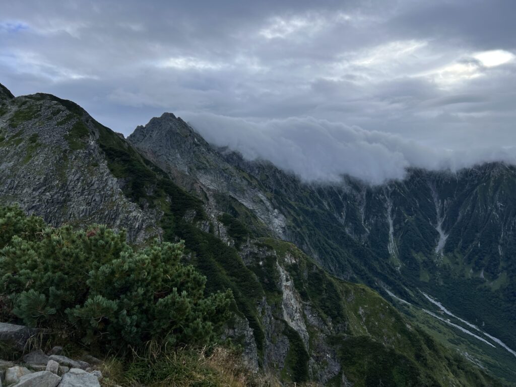 翌日、まだ暗い朝3時に起床。バーナーでお湯を沸かし、フリーズドライの朝食をとり、ヘッドランプの光を頼りに4時に出発した。粟沢支配人(実力派の気象予報士)の予報通り、朝6時を過ぎると、前穂高と奥穂高、ジャンダルムの方向に滝雲が広がり始めた。西穂独標を越え、チャンピオンピークに近づくにつれ、西穂高岳はますます雄大に映りました。